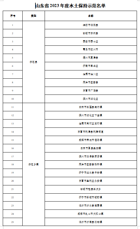 山東公示2023水土保持示范名單,這些縣、鄉(xiāng)鎮(zhèn)等入選