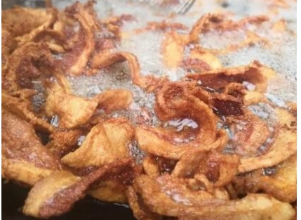 入場,先來一袋熱乎出鍋的脂渣,好比看電影配爆米花,脂渣是青島人逛泊里的標(biāo)配,肥瘦相間的肉條下了鍋,白煙漸起,誘人的油香和肉香,讓人忍不住夾起一片冒著晶亮油珠兒的肉脂渣塞進(jìn)嘴里,一邊呼氣一邊咀嚼……