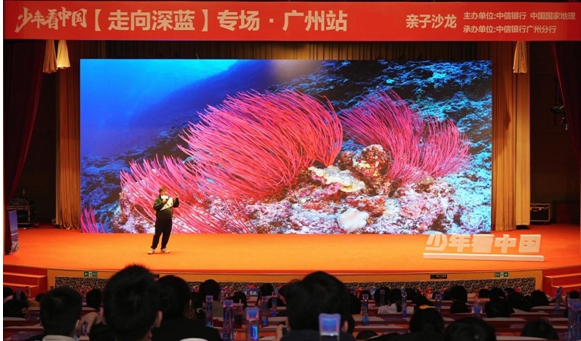近日,中信銀行攜手《中國國家地理》雜志打造的“少年看中國”系列精彩內容展映及分享活動2024年度首站落地廣州,本期以“走向深藍”為主題,為參與活動的少年展映并講述了西沙群島的繽紛地貌、深海烈焰的壯觀美景以及千里長沙的耕海文明。