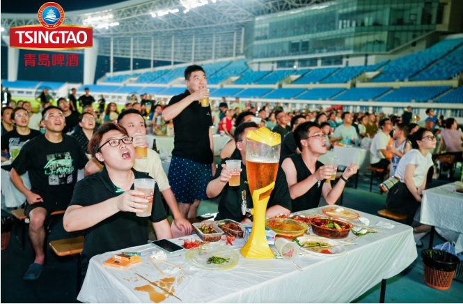 而在揚州青島啤酒節蘇超之夜,900個座位座無虛席,不論是久經賽場的資深球迷,還是因城市大戰“入坑”的賽事看客,都在此起彼伏的暢飲聲和碰杯聲中,與好友們一道屏息觀戰、放聲歡呼。